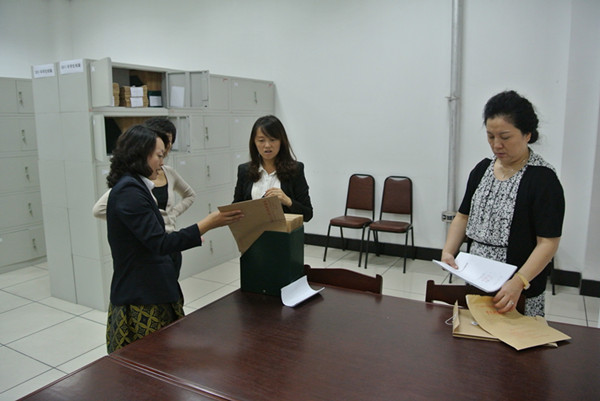 会上,馆长杨宏同志向检查组汇报了学校档案工作组织机构及管理机制、档案管理基础业务工作、档案管理现代化、信息化建设工作、档案业务指导工作、档案利用与现行文件报送工作等方面内容。随后,检查组深入综合档案库房、业绩档案库房、学生档案库房,随机抽取部分档案进行审核,同时还检查了微机室电子数据、图像文件的上传和录入工作。