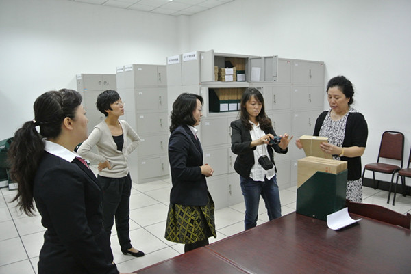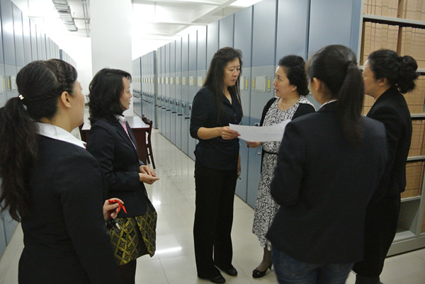 由省档案局委托省教育厅、省高校档案协作组组成的专家组,对在哈高校档案工作进行年度检查,于2013年9月13日上午莅临我校,对我校档案工作进行检查。校党委副书记杨弘宇同志参加会议,档案馆全体同志统一着装,陪同检查。
