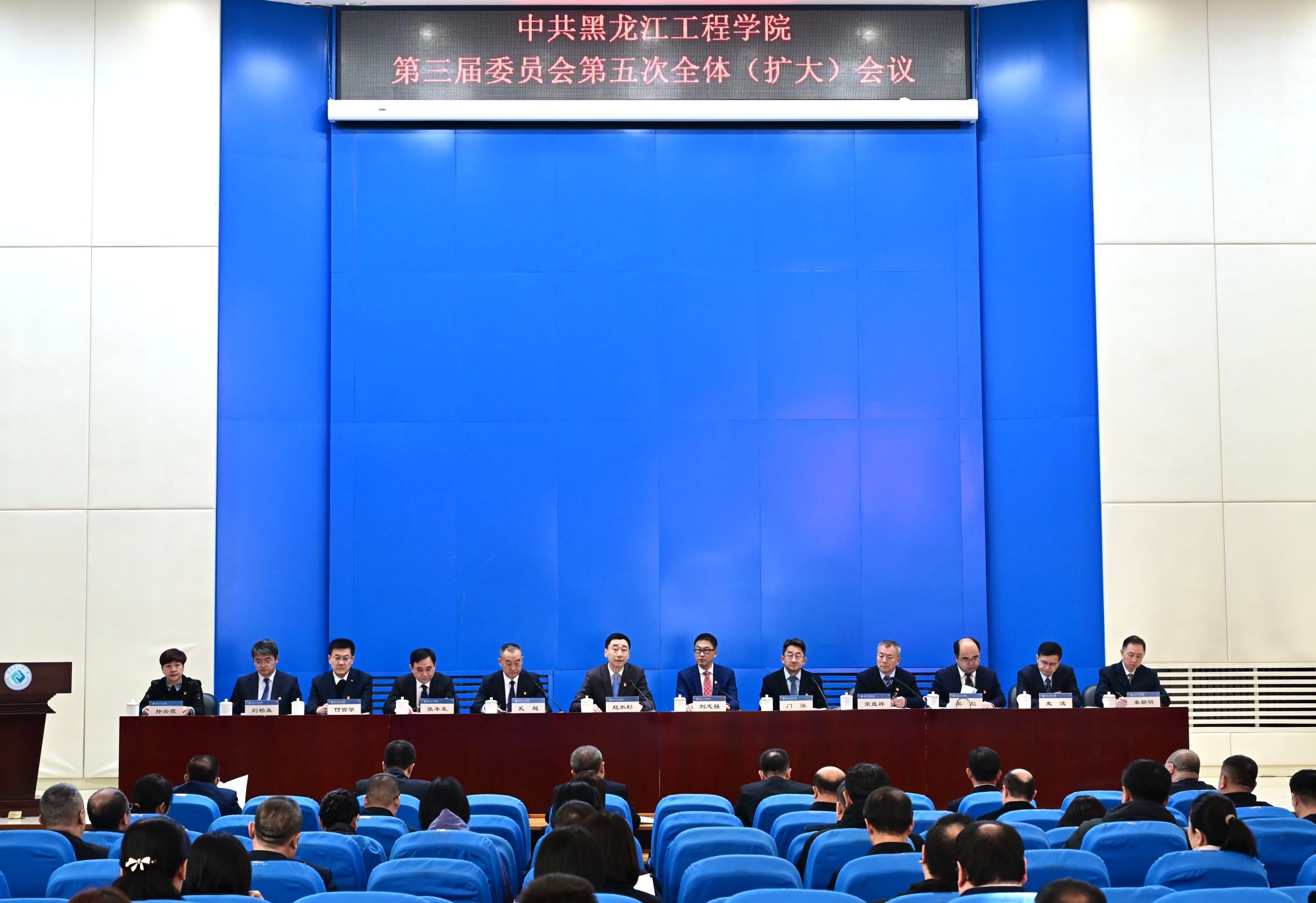 3月24日,中共黑龙江工程学院第三届委员会第五次全体(扩大)会议在教学办公楼A区报告厅召开。全会总结学校2025年工作完成情况和“十四五”时期主要办学成就,部署2026年重点工作任务和“十五五”发展规划,审议学校党委《关于制定改革和发展第十五个五年规划的建议》,为学校高质量发展、实现更名大学建设目标进一步统一思想、凝聚共识、汇聚力量。全会由学校党委常委会主持。党委书记赵水杉向全会作工作报告。