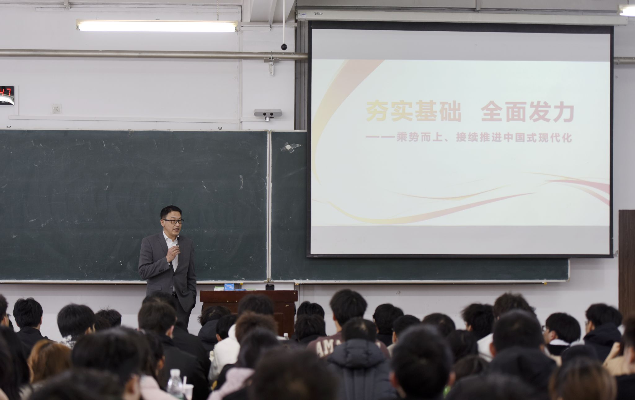 此次校长讲授“形势与政策”课,是落实上级关于高校思想政治理论课部署要求及推进学校“大思政课”建设的重要举措。学校后续将持续推动党的创新理论进校园、进课堂、进头脑,为引领广大师生统一思想、凝聚共识、汇聚力量筑牢坚实政治根基。