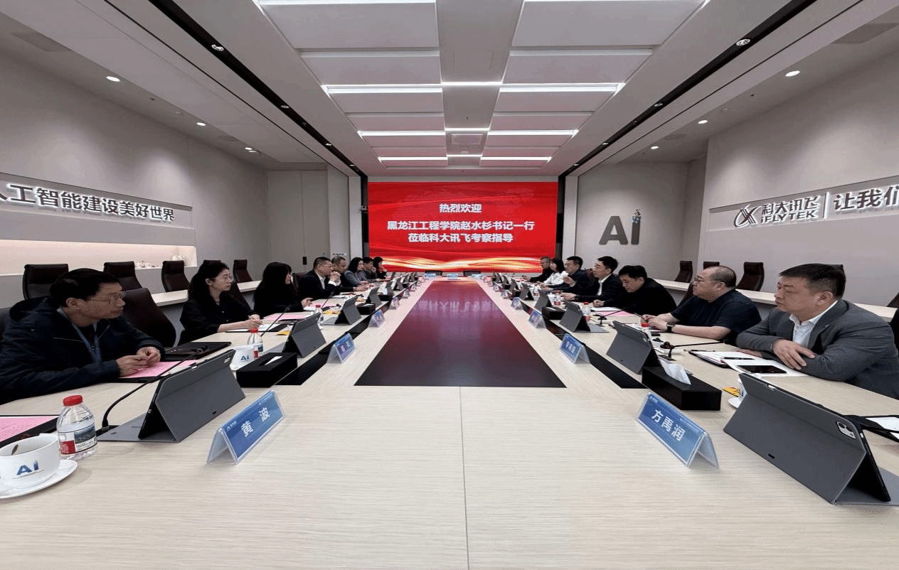 座谈交流会上,科大讯飞副总裁冯祥代表公司对赵水杉一行的到访表示热烈欢迎,详细介绍了企业的发展历程、核心技术优势、战略布局以及在人工智能领域的行业地位与创新成果。冯祥指出,科大讯飞深耕人工智能领域多年,始终坚持“技术顶天、应用立地”的发展理念,在智慧教育、智能制造等多个领域形成了成熟的解决方案与丰富的实践案例,可以为黑龙江工程学院应用型办学提供多方面的技术支持,期待以此次交流为契机,与学校建立长期稳定的合作关系,实现资源共享、优势互补、共赢发展。