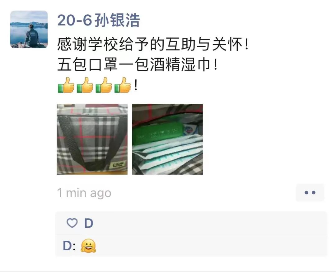 计算机科学与技术学院团委将学校这份特殊时期的暖心问候发放到每一位计算机科学与技术学院家庭经济困难学生手中。收到暖心礼包后,同学们纷纷表示感谢学校对他们的关心、关爱与重视,并表示会在学校安心学习,积极参与勤工助学和各种有意义的服务活动,努力充实自己,不负老师们的殷切期望与自己大学时代的奋斗目标。