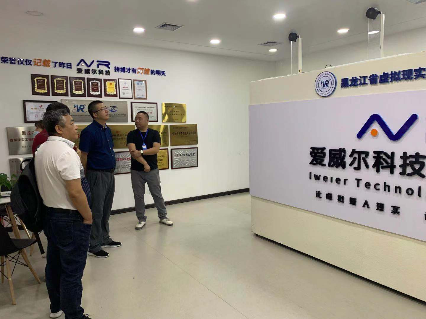 在爱威尔公司负责人的带领下,参观了公司和实习基地。并介绍了公司的现状、研究的领域、校企合作情况以及取得的成绩。哈尔滨爱威尔科技有限公司(以下简称爱威尔科技)成立于VR元年2016年9月,是专注于虚拟现实技术领域研发与创新的国家级高新技术企业、中小型科技企业,目前主要从事XR(VR/AR/MR)、全息及5G数字化互动技术领域相关软硬件、内容及行业解决方案研发。公司在校企合作方面经验丰富,2017年与哈尔滨工业大学共建了黑龙江省虚拟现实工程技术研究中心;同年成为哈尔滨市人社局颁发的哈尔滨市高校毕业生就业见习基地;于2019年与黑龙江交通职业技术学院共建VR+轨道交通方向的VR/AR技术实验室;同年被黑龙江省虚拟现实科技学会授予VR+智能制造研究基地;同年成为中国电子质量管理协会虚拟现实专业委员会授权的黑龙江省虚拟现实人才培养基地,可培训并颁发工信部的虚拟现实技术职业技术资格证书;2020年与黑龙江农垦职业学院共建成立北大荒XR产业学院。2018-2020年间在VR/AR领域大赛中取得优异的成绩。