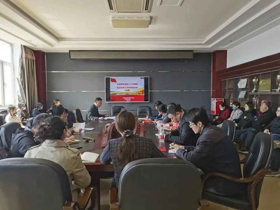 会上,潘可耕书记重点从使命任务、历史结论、思想要求三个方面展开,并将党的二十大精神与实际相结合,表示党的创新理论的内在动力是履职尽责、主动作为,同时教师、学生党员要树立事业为重的奉献精神、迎难而上的进取精神和抓实干的担当精神,敢干担事担责,敢干攻坚克难,敢干迎接挑战,把握创新理论的命脉。
