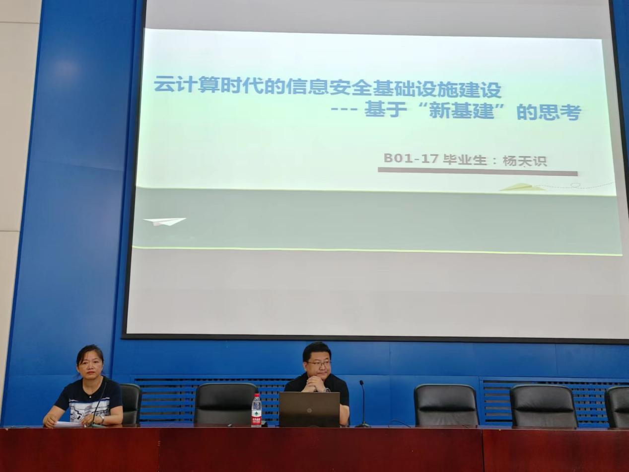 讲座中,杨天识校友阐述了新基建背景下,如何重点保障云计算基础设施安全,如何为新基建和东数西算工程的实施保驾护航,讲解了相应的安全保障框架体系和技术路线。杨天识也以学长的身份分享了他自己的职业成长历程,给同学们在升学和就业及个人发展上提出了十点宝贵建议,使学院的老师和同学们都受益非浅。