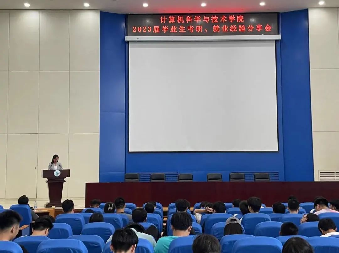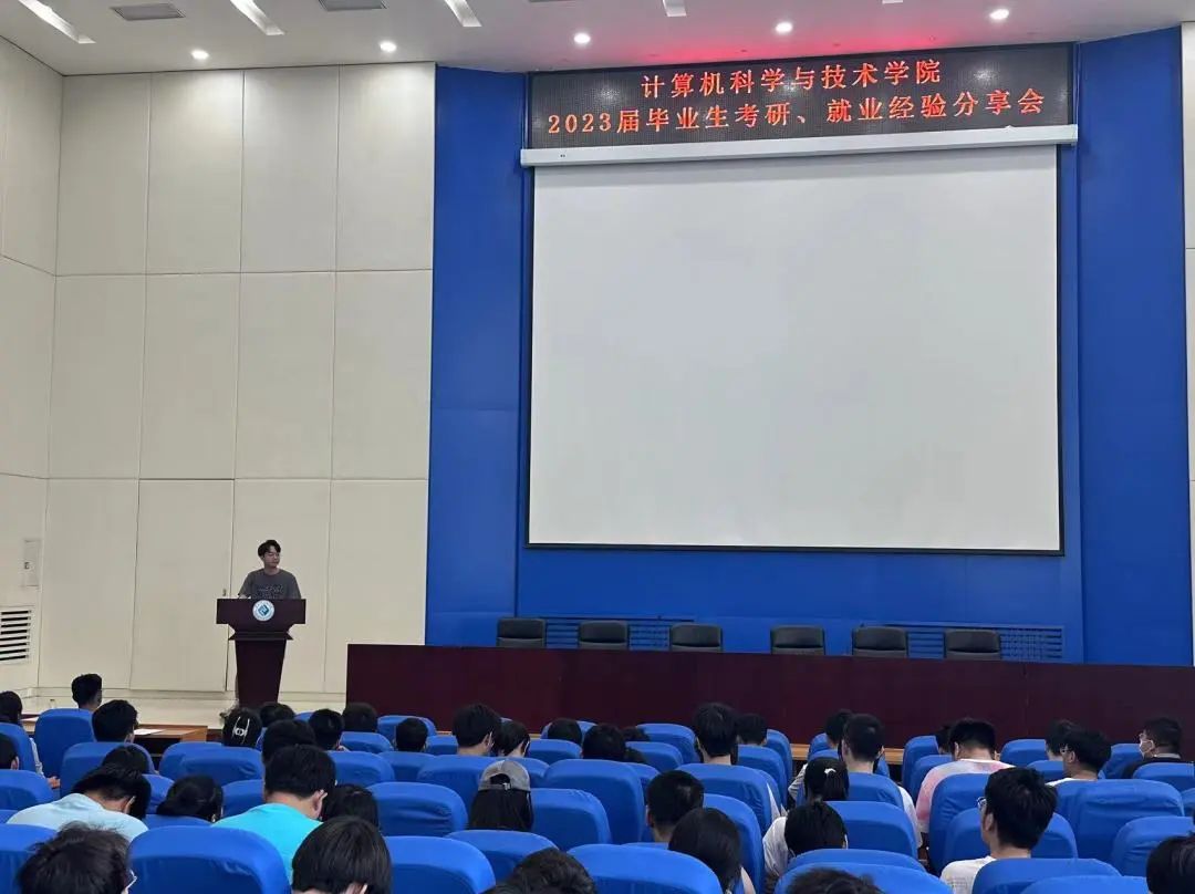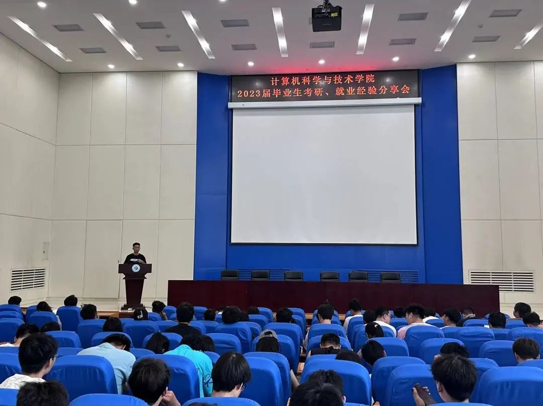 为切实推进学院就业工作提质增效,帮助学生提前明确未来发展方向,树立正确的就业观,计算机科学与技术学院于2023年6月21日下午在A楼报告厅召开了2023届毕业生考研、就业经验分享会。学院辅导员董磊老师出席本次交流会,就业考研优秀学生代表及我院部分学生参加了本次会议,会议由学院副书记王焕博主持。
