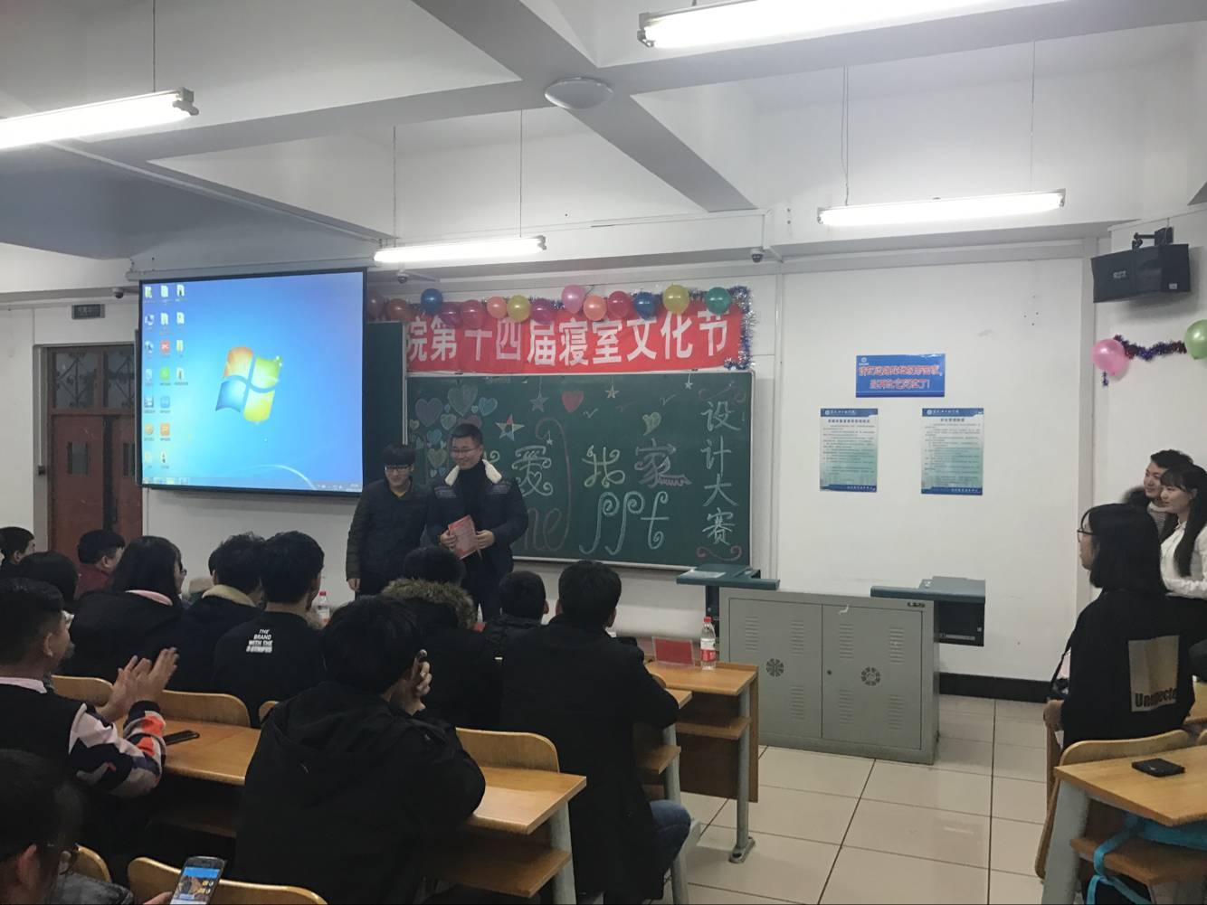 ppt大赛作为计算机院学生课余活动的重要组成部分,自报名开始就受到了老师和广大同学的大力支持。本次大赛以我爱我“家”为主题,经过首轮筛选,进入决赛的八个寝室分别展示了他们自己准备的ppt,并由一名讲解员进行讲解