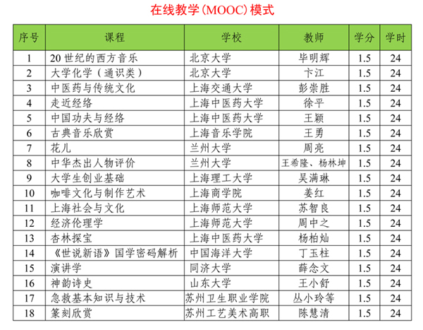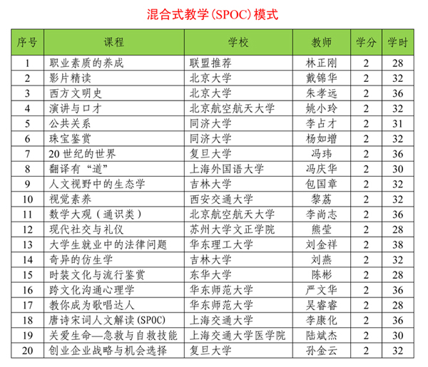 具体SPOC和MOOC模式课程列表如下: