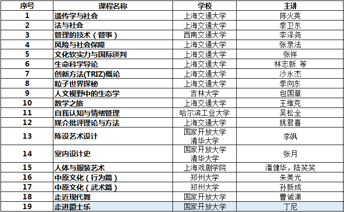 (4)以下十九门课程须在 好大学在线课程平台 完成学习,请选课同学注意。课程列表: