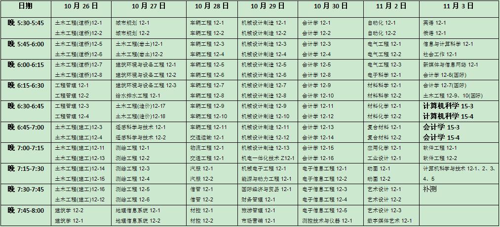 3、如测试时间与选修等课程冲突,请提前两天联系。
