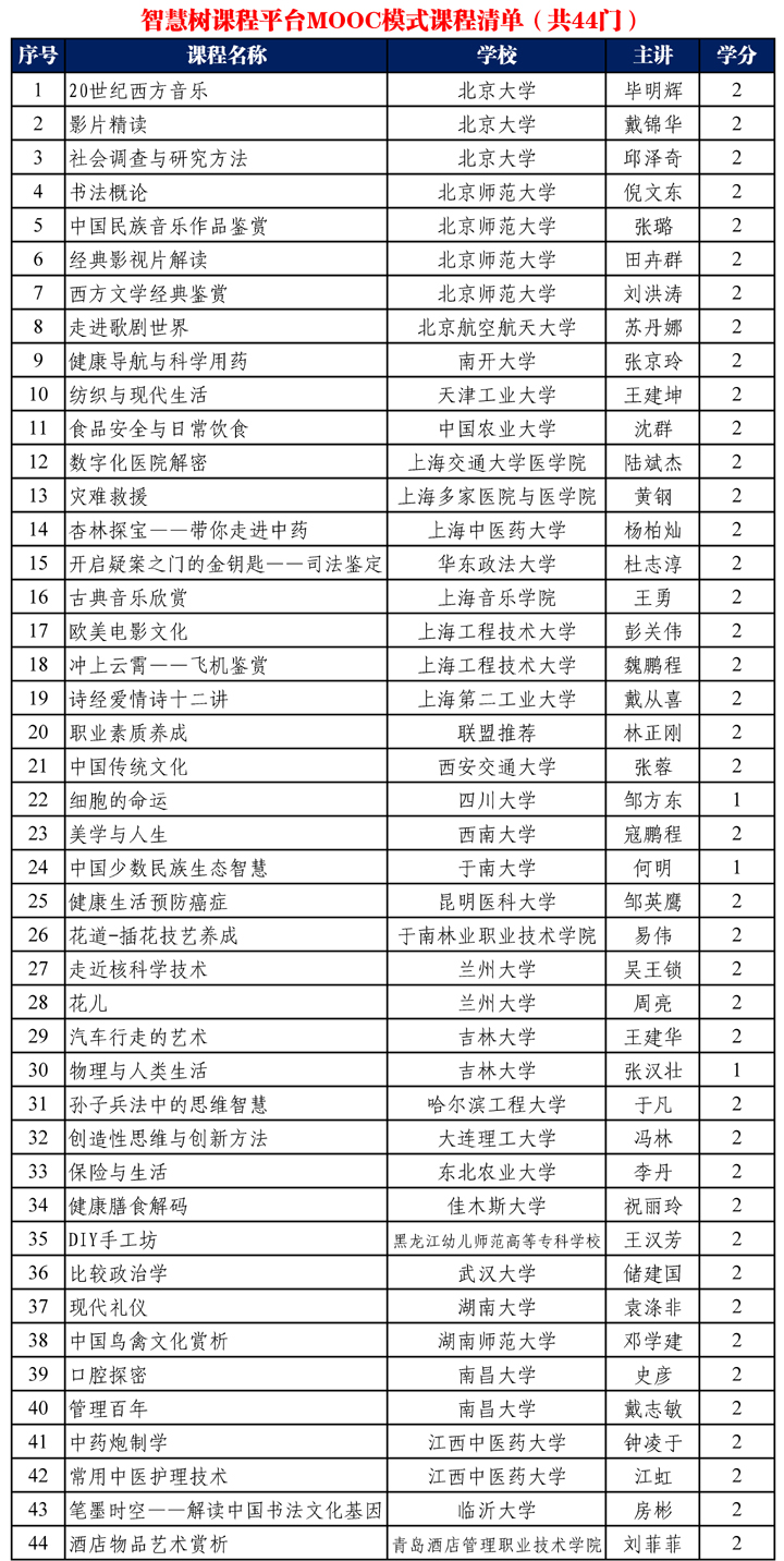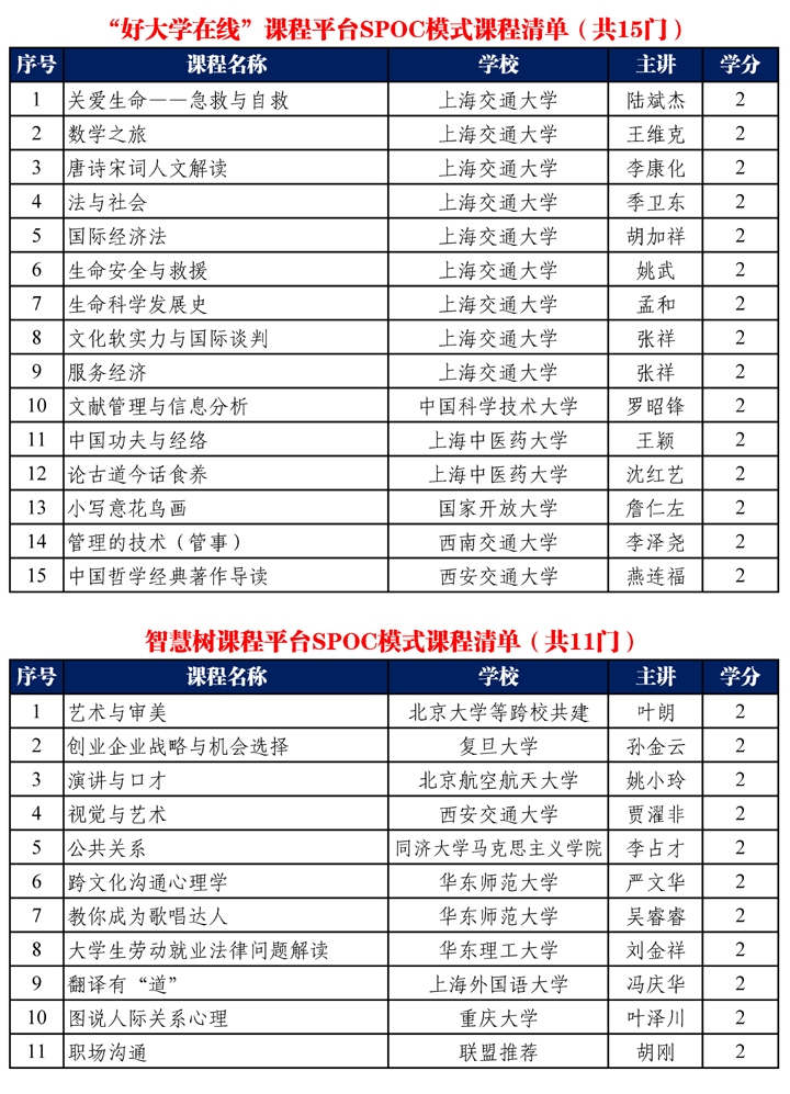 具体SPOC和MOOC模式课程列表如下: