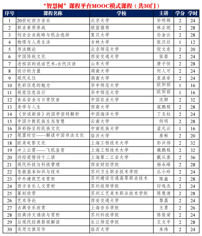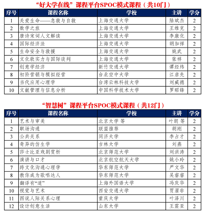具体SPOC和MOOC模式课程列表如下: