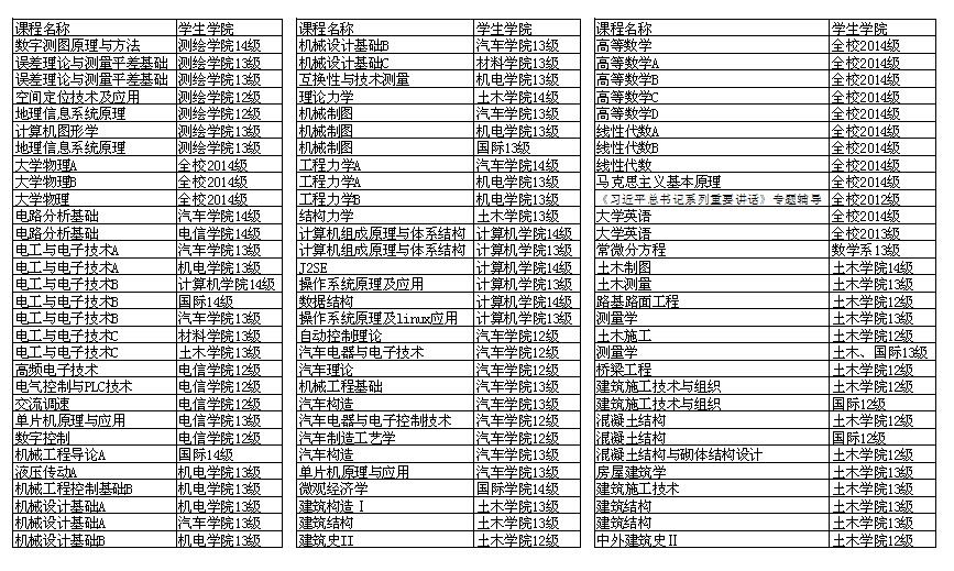 1. 2014-2015学年第二学期开设的理论课程,经期初补考后仍未通过,且在本学期可开班(插班)重修的课程,需进行重修网上报名(可报名重修课程见表一,可报名学生名单可到学生所在院、系办公室查询);