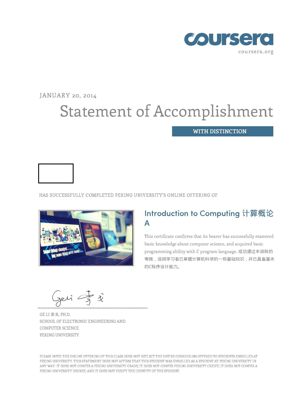 慕课学习获得的证书