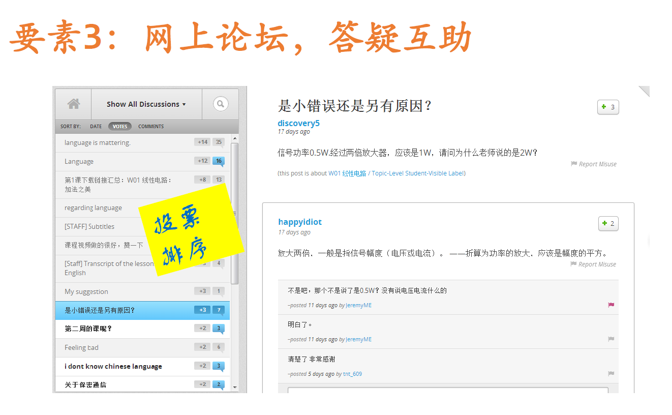 所谓“慕课”(MOOC),顾名思义,“M”代表Massive(大规模),与传统课程只有几十个或几百个学生不同,一门MOOCs课程动辄上万人;第二个字母“O”代表Open(开放),以兴趣导向,凡是想学习的,都可以进来学,不分国籍,只需一个邮箱,就可注册参与;第三个字母“O”代表Online(在线),学习在网上完成,无需旅行,不受时空限制;第四个字母“C”代表Course,就是课程的意思。