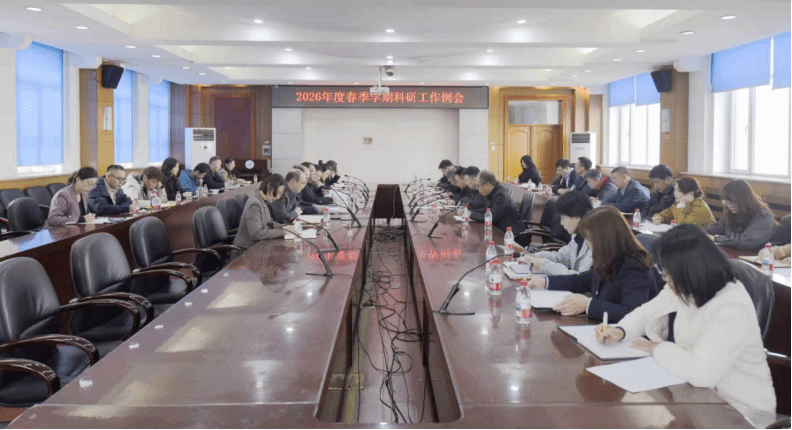 4月15日下午,学校2026年度春季学期科研工作例会在教学办公楼801会议室召开。会议由党委常委、副校长吴彪主持,科研处、财务处、学术理论研究部负责人,各二级学院(部)院长(主任)、主管科研工作的副院长(副主任)、科研秘书及科研处全体工作人员参加会议。