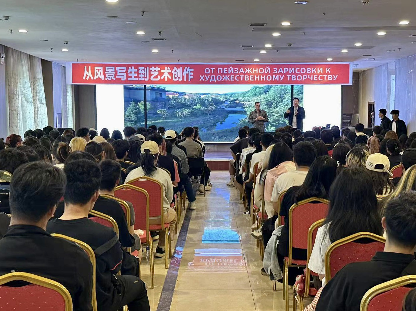 2023年5月25日,由我校艺术与设计学院主办的《从风景写生到艺术创作》科研讲座在亚布力国际会议大厅成功举行。本次讲座是艺术与设计学院启动俄罗斯院士工作站、提升艺术学科建设国际化水平系列科研活动之一,主讲嘉宾为俄罗斯科梅罗沃艺术科学院院士安德烈·德罗兹德·尼古拉耶维奇教授。讲座由艺术与设计学院副院长肖禹蓁主持,院长周艳芳、副院长刘辉与艺术与设计学院200余名师生共同聆听了本次讲座,周振宇博士进行全程翻译。