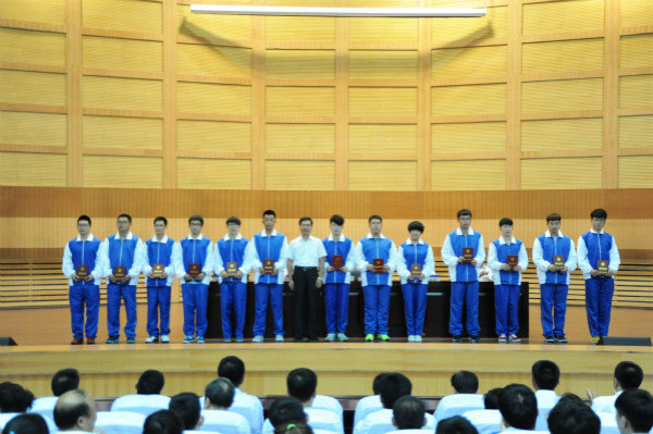 下午13:30分,开学典礼在庄严的国歌声中开始了。校纪委书记刘建驰教授宣读了2014级优秀新生表彰决定。校党委书记申林教授为2014级优秀新生代表颁发了荣誉证书。测绘工程学院张为成老师、土木与建筑工程学院段容同学、汽车与交通工程学院刘泽同学分别代表教师、在校生和新生发言。
