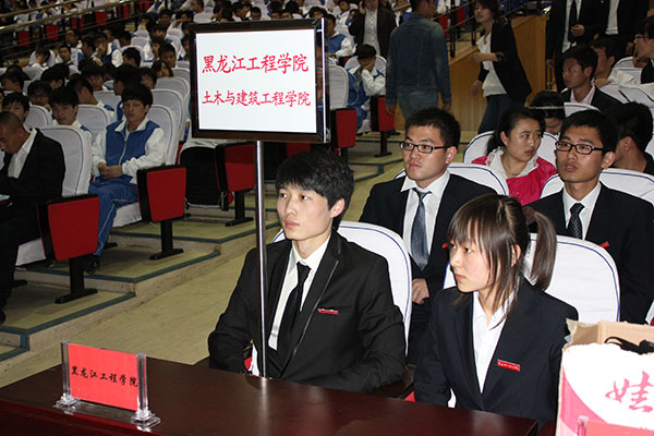 5月15日下午1:00,土木与建筑工程学院第三届“龙建杯”校园科技(工程)文化系列活动开幕式在我校逸夫报告厅隆重举行。出席本次开幕式的有我校党委副书记杨弘宇、省教育厅高教处处长丁哲学、龙建路桥股份有限公司副总经理陈超、黑龙江省公路学会副理事长张景致以及省内十所参赛高校相关学院的院长、系主任。我校部分处室的领导也出席了开幕式。