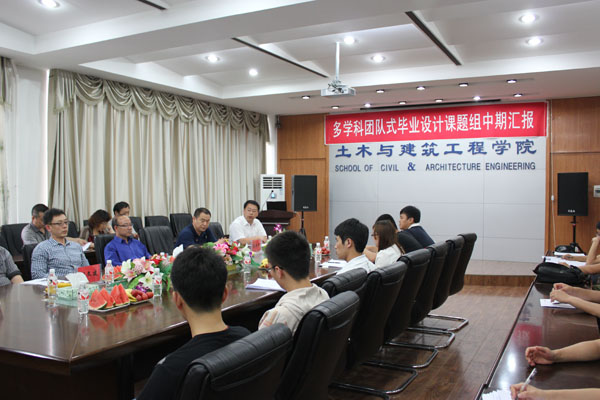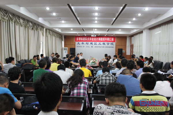 2013年5月28日下午,土木与建筑工程学院2013届“多学科团队式土建类专业毕业设计课题组中期检查汇报会”在土木工程楼四楼会议室举行。土木与建筑工程学院院长武鹤教授主持汇报会。