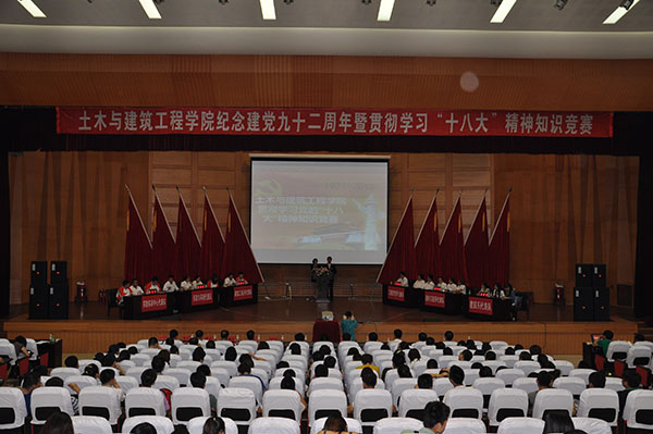 6月28日的知识竞赛在我校逸夫报告厅隆重举行。校党委组织部部长王举鹏、校党委宣传部部长郝丽红、学生工作部部长德国明、校团委副书记王大春、黄敬卫出席了比赛现场。此次主题知识竞赛共有道桥工程系、建筑工程系、工程管理系、建筑系、市政与环境工程系、实验实训中心六只代表队参加了比赛。比赛题型分为必答题、抢答题、风险选答题和现场观众互动等环节,竞赛知识涵盖十八大报告中提出的新思想、新观点、新论断、新举措,涉及十八大报告各个部分的理论创新点。参赛选手在必答题环节沉着自信,抢答题环节积极踊跃,风险题环节沉着自信,现场观众在互动环节热情参与、争相答题。整场比赛高潮迭起,气氛热烈。经过激烈角逐,最终道桥工程系荣获一等奖,建筑工程系、工程管理系获得二等奖,建筑系、市政与环境工程系、实验实训中心获得三等奖。