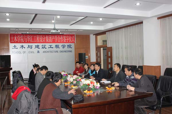 2012年12月17日,黑龙江工程学院土木与建筑工程学院与华汇工程设计集团股份有限公司校企合作签约仪式在土木楼四楼会议室举行。土木与建筑工程学院武鹤院长、张家平副院长、王宇鹏书记及各系主任,华汇工程设计集团股份有限公司张水根总裁、邵林海总经理、章华明财务总监、方案中心周敏玉主任等出席了签约仪式。