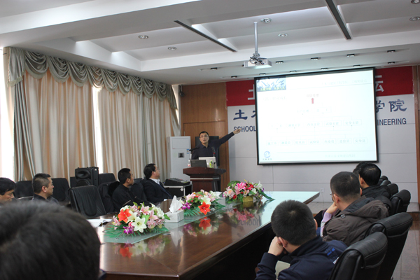 2012年12月21日下午,土木与建筑工程学院在土木工程楼418举办了“第三期土木工程师论坛”, 龙顺公司董事长李书奇校友应邀来我院为师生作了题为“你的土建人生”的讲座。讲座由院长武鹤教授主持,道桥系、建工系、工程管理系等相关专业教师及部分学生参加了讲座。