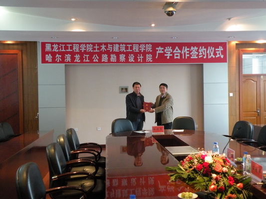 10月14日下午,土木与建筑工程学院与哈尔滨龙江公路勘察设计院在主楼801会议室举行了产学合作签约仪式。哈尔滨龙江公路勘察设计院院长孟德英、书记刘耀华,我校副校长张洪田、产业处处长任永维、土木与建筑工程学院党政领导班子出席了签约仪式。签约仪式由土木与建筑工程学院院长武鹤主持。