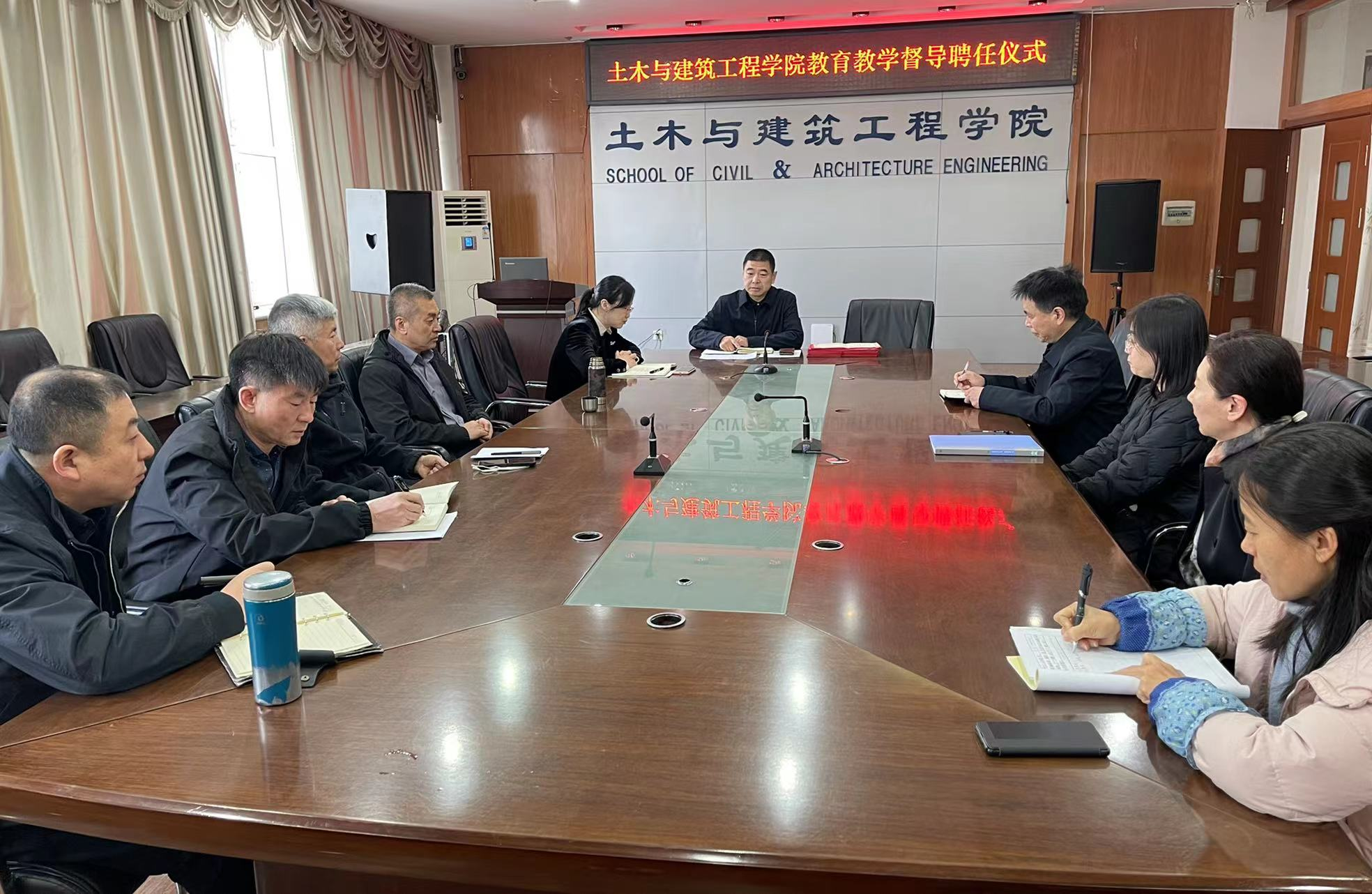 4月12日上午,土木与建筑工程学院在知行楼418会议室召开了教育教学督导聘任仪式暨教育教学督导工作会议。会议由郭丽娟副院长主持,教学督导组成员及办公室相关人员参加了会议。