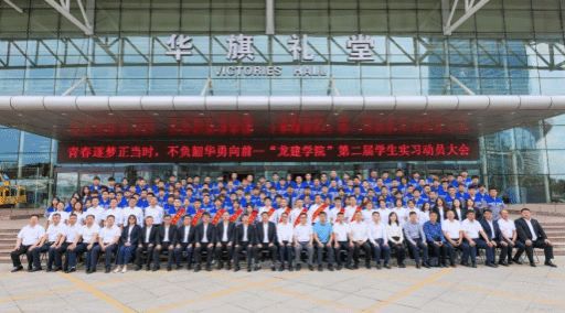 龙建股份党委书记田玉龙、董事长讲话指出,学校和龙建为同学们提供了优良的学习条件,为学生的发展提供了广阔空间,他鼓励同学们坚定理想信念,珍惜机会,争做不懈奋斗的努力者;勇于实践、奋发有为,争做敢于攀登的践行者;主动思考、终身学习,争做勇于创新的开拓者。树立正确的价值观,融入企业,争做龙建未来的建设者。