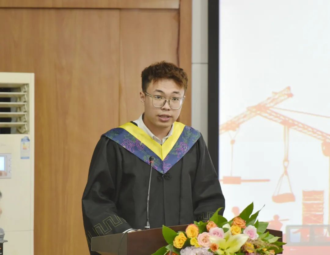 仪式在为同学们精心准备的毕业短片《梦呓》中拉开序幕,一季闻花、一季听雨、一季迷茫、一季成长,大学好像一场匆匆的旅行,来不及好好挥手便要着急道别。短片后全体共唱校歌,张家平教授为同学们深情讲授离校前的最后一课,他希望同学们胸怀理想、志存高远,勇担历史使命,坚定前进信心,把个人的理想追求融入党和国家事业之中;保持自信、敢为人先,传承工程师自力更生、艰苦奋斗的优良品质,努力成为引领未来的栋梁之才,龙建集团四公司总工程师刘明的精彩发言也赢得了毕业生们的阵阵掌声,史泽宇同学代表全体毕业生,衷心感谢辛勤操劳的父母、无微不至的教师和朝夕相处的同学,真诚祝愿母校桃李芬芳、再创辉煌!