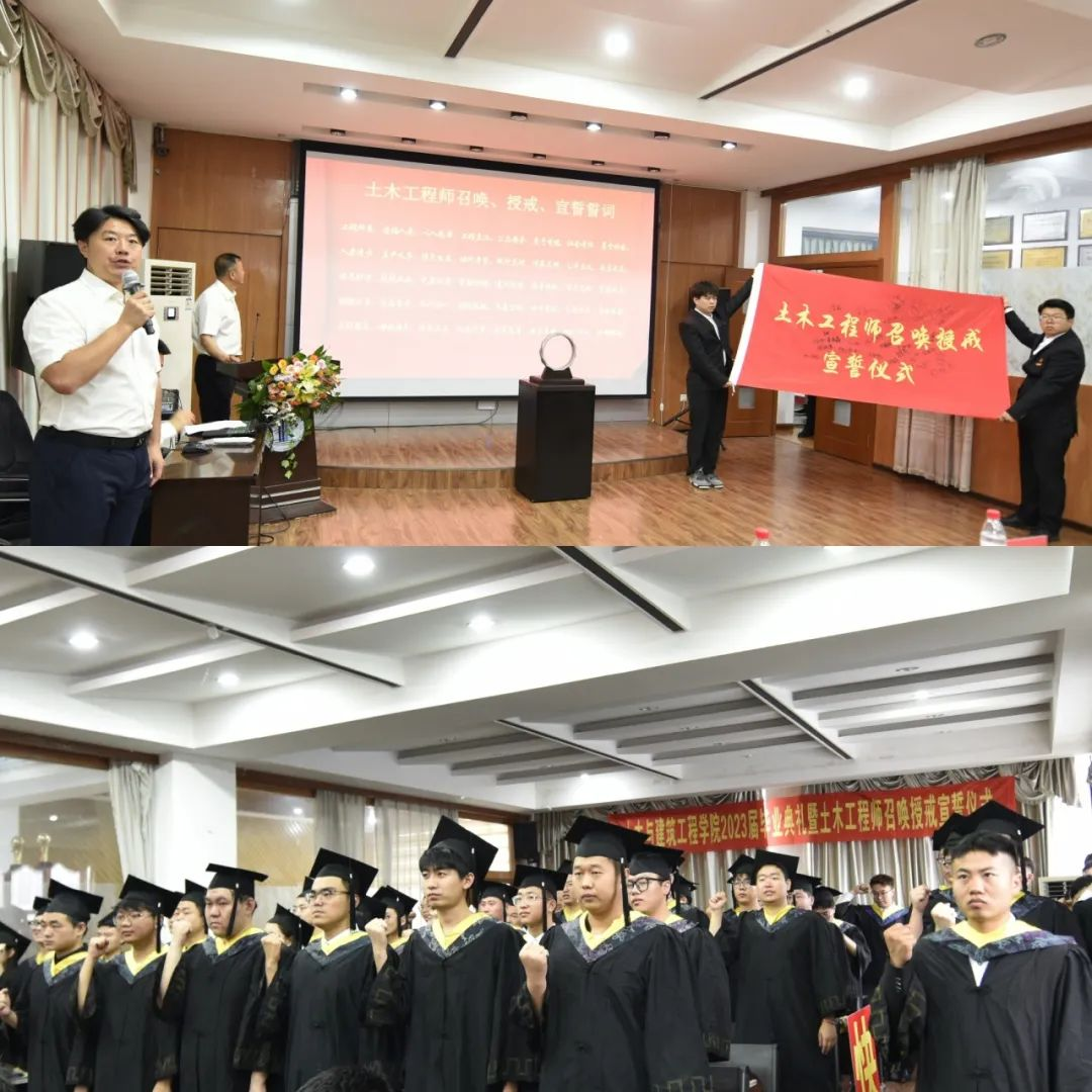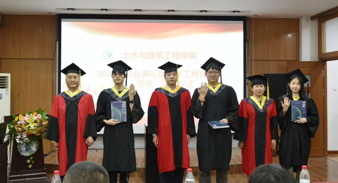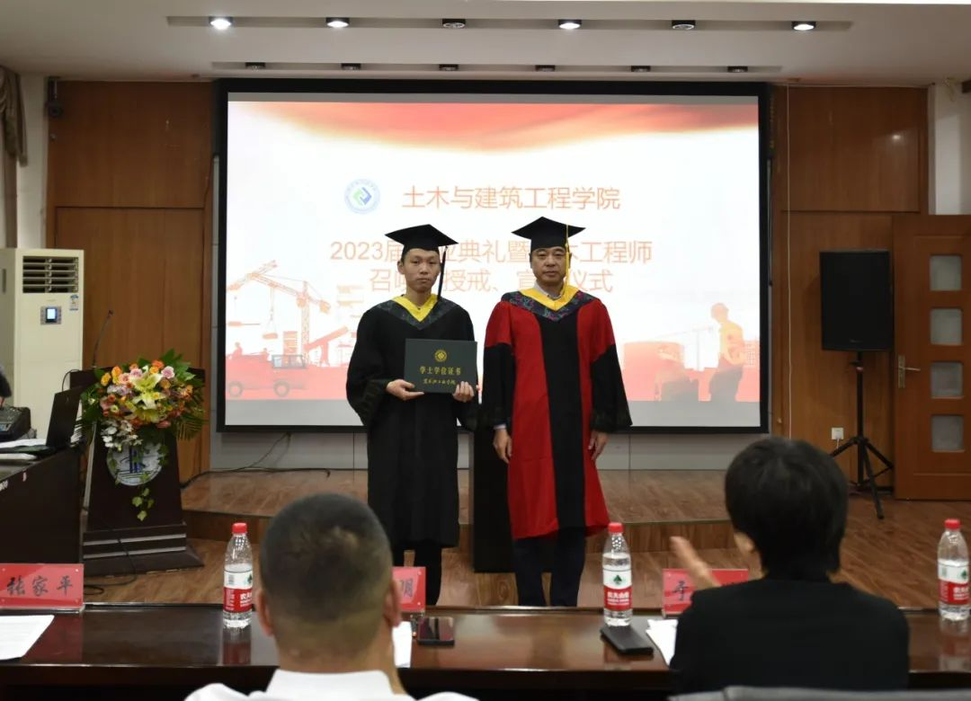 土木与建筑工程学院本科生毕业典礼暨工程师召唤、授戒、宣誓授予仪式在知行楼418举行。黑龙江工程学院党委书记于沐琳、龙建集团四公司总工程师刘明,以及土木学院领导班子成员、教师代表和毕业生代表齐聚一堂,共同见证706名本科毕业生的收获时刻,欢送土木学子从此踏上人生新的征程。