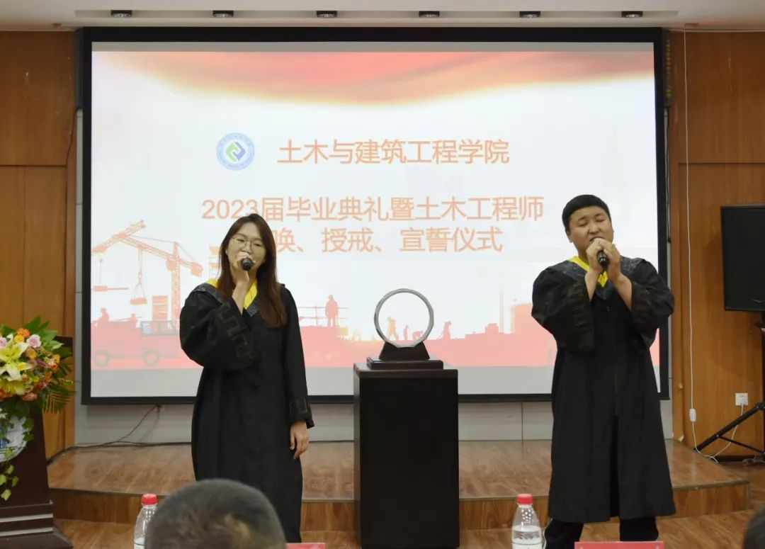 “责任立于心、担当行天下”,土木学院2023届本科生毕业典礼暨工程师召唤、授戒、宣誓仪式在毕业生武思琪同学和王晓龙同学献唱的歌曲《记.念》中落下帷幕,承载着黑龙江工程学院土木情怀和师长嘱托的毕业生即将走向海角天涯,指点三山五岳,在奋斗中释放青春激情,成就人生梦想。