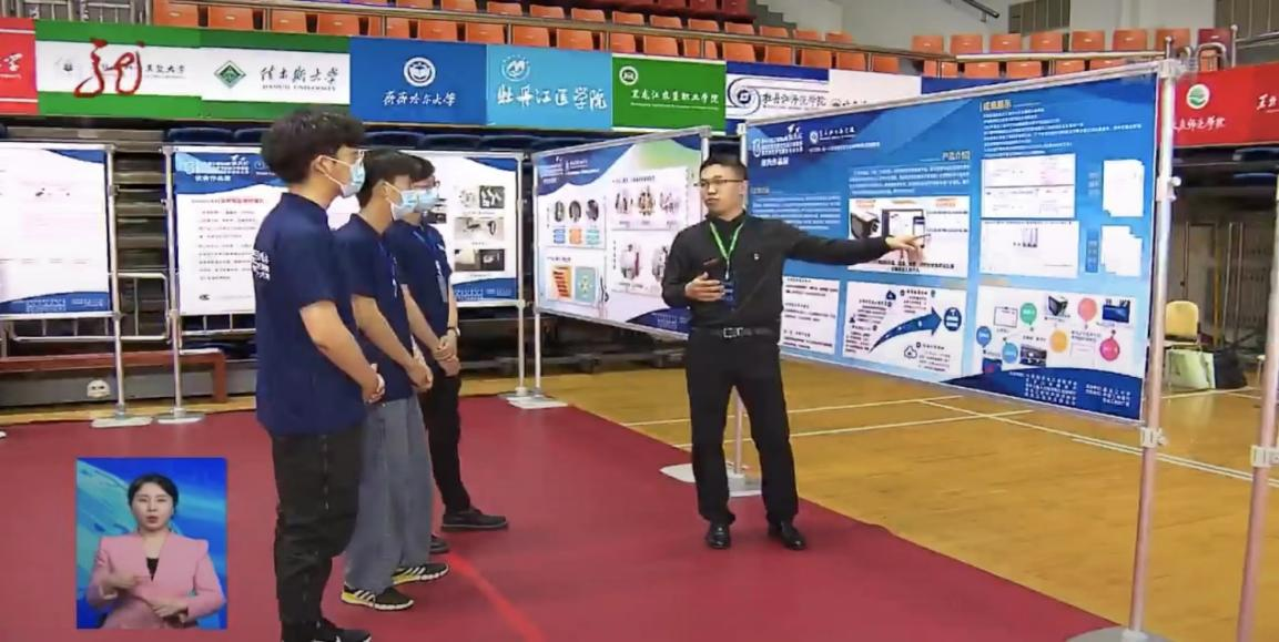 图为黑龙江卫视新闻栏目报道片段(右一为史泽宇同学)