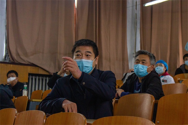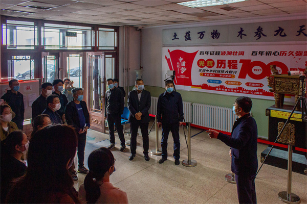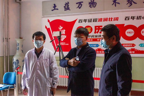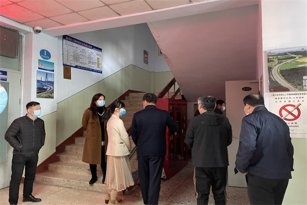 于喜春副书记向各位参观演练的领导、教师讲解疫情防控演练大致内容。
