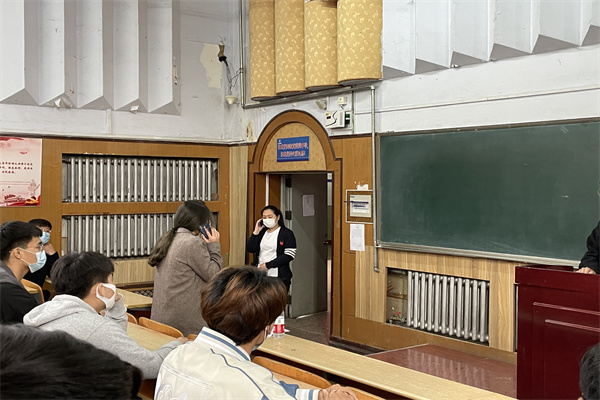 开始演练,模拟学生在上课期间出现发热病例,班长及时联系辅导员。