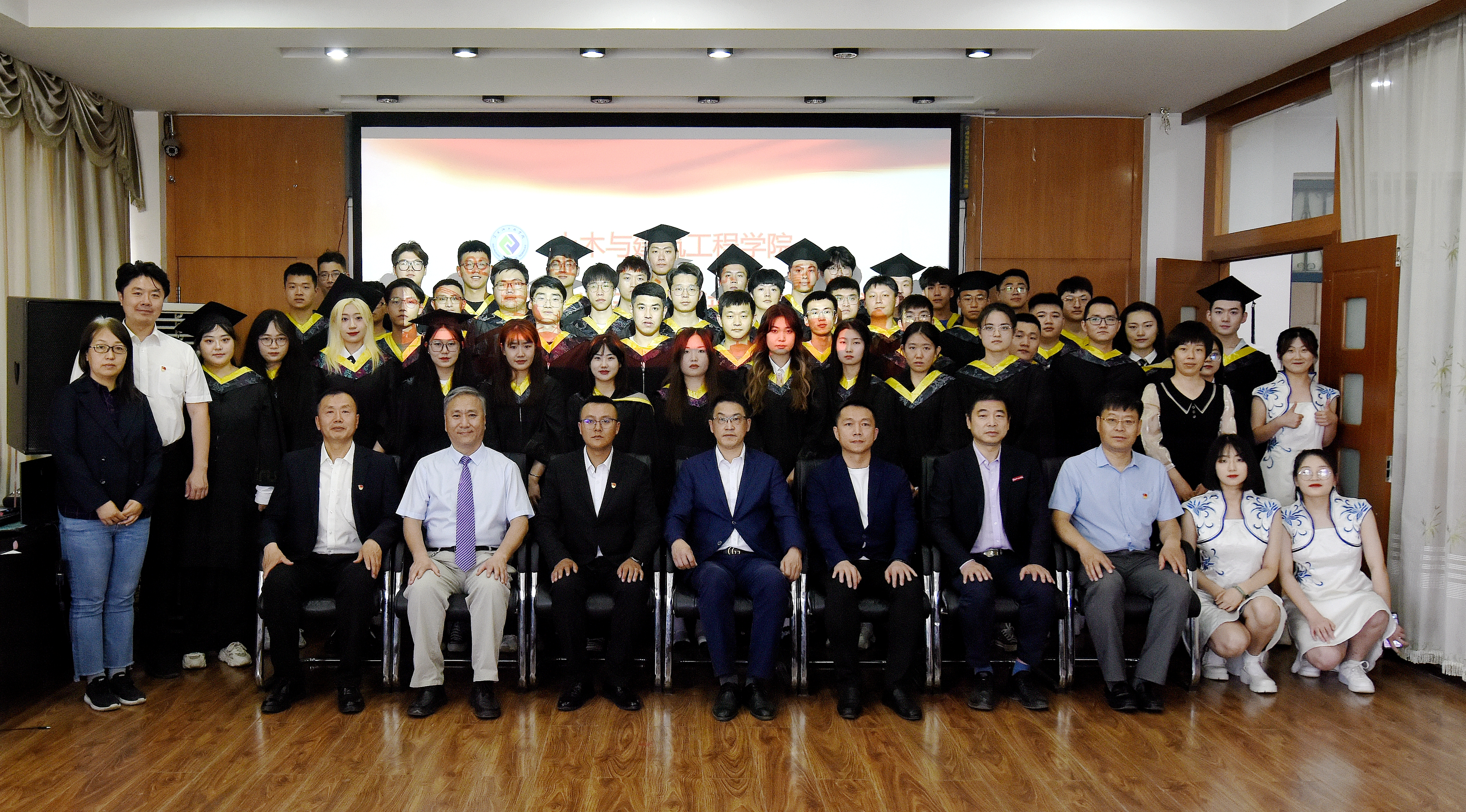 仪式在学弟深情的歌声中落下帷幕,毕业生与领导老师合影留念,别情依依、心潮激荡。