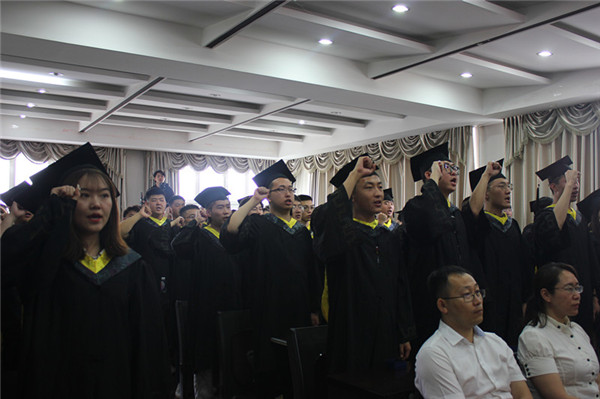 最后,付晓飞校长致辞,他要求毕业生:第一,要加强学习,养成终身学习的习惯。学习是人一生进步的总开关,只有坚持学习,才能不断取得成就。要树立正确的事业观,要到基层去深入了解工程,这是一生成长的基础。第二,要有家国情怀。要孝敬父母,也要建立自己幸福的家庭,幸福的家庭是事业成功的基石,把家庭建设好,才能更好地承担起工作重任。第三,要学会包容。要努力提高自身道德水平,努力帮助别人。同时,要对事物有自己的认识,不要盲从。懂得坚持,守住心理防线才能走向人生辉煌的顶点。付晓飞校长语重心长地叮嘱大家,今后同学们要面对的形势更加复杂,要深刻理解、认同党的集中统一领导、能办大事的这种优势,抵制住各种诱惑,守好初心,筑牢安全底线。付校长最后说,学校永远是大家的港湾,期待大家一切顺利,前程似锦。