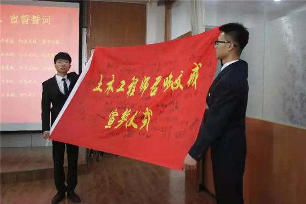 6月25日,土木与建筑工程学院本科生毕业典礼暨工程师召唤、授戒、宣誓授予仪式在土木楼418举行,会场简洁而布置庄重,满含工程文化气息。黑龙江工程学院校长付晓飞教授、黑龙江省龙顺建工集团董事长李书奇、土木与建筑工程学院领导班子成员、教师代表和毕业生亲友齐聚一堂,共同见证2021届652名本科毕业生的收获时刻。