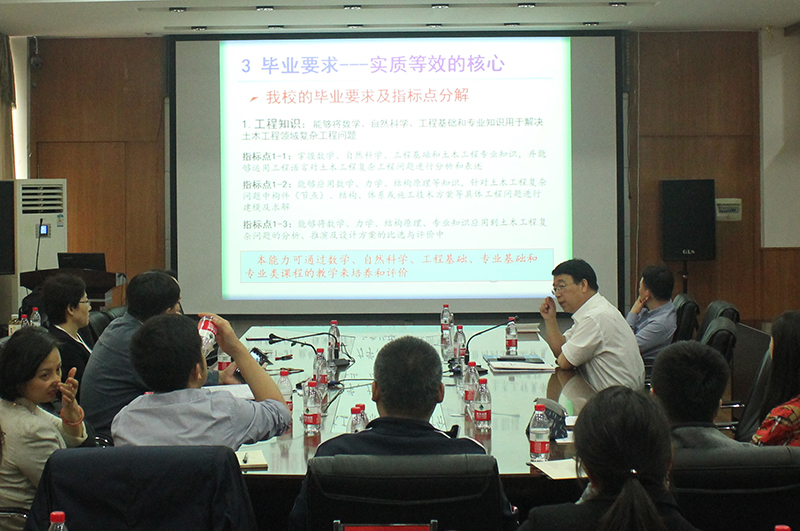 武鹤院长首先对王敏书记一行的到来表示欢迎。然后向来宾介绍了学院的历史沿革、学科专业建设、人才培养、师资队伍建设等情况,接下来分享了土木与建筑工程学院在土木工程专业认证工作中的经验和具体做法,从培养目标、毕业要求、课程设置、支撑条件、持续改进等方面,用了近2个小时的时间进行了详细的讲解。