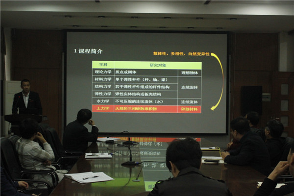 为提升教学水平与人才培养质量,鼓励和引导全院教师凝心聚力、聚焦课堂教学,推动课程建设,努力打造一批带有我院烙印的金课,学院开展了为期2个学期的系列说课活动。5月22日下午,在土木楼会议室,建筑工程系李连志老师的“说说《土力学》”拉开了本次系列说课活动的序幕。