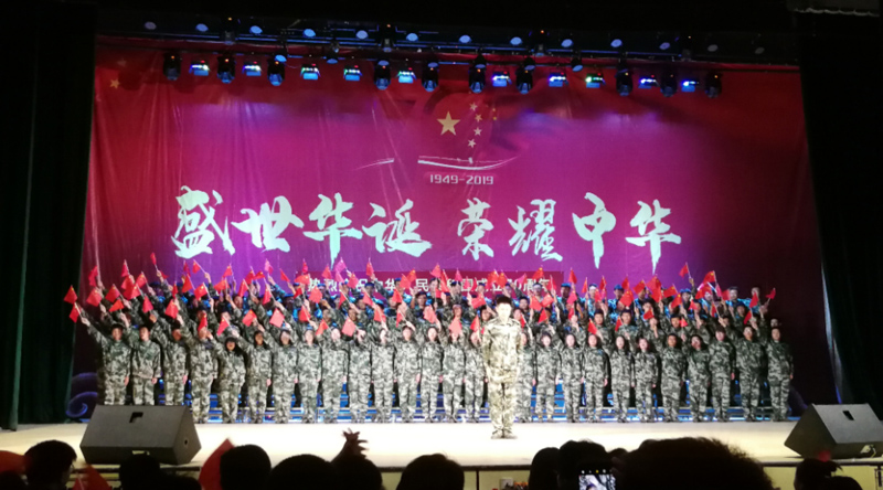 红歌嘹亮,歌唱祖国。由道桥系全体大一新生带来的曲目《我和我的祖国》拉开了此次活动的帷幕,嘹亮的歌声和优美的旋律,奏响了中华民族伟大复兴的乐章。同样由他们带来的曲目《国家》歌唱了家与人民的命运风雨同舟、血肉相连,赢得了现场师生们的热烈掌声。随后,由建筑工程系大一新生带来的曲目《歌唱祖国》《游击队之歌》充满了希望与力量,唱出了学生们的爱国情怀和对祖国的美好祝愿。
