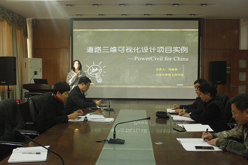 为适应住建部《建筑业发展“十三五”规划》要求,推动建筑信息模型(BIM)技术推广应用,提高专业教师队伍BIM技术应用水平,10月23日下午,土木与建筑工程学院在E418会议室举办了道路BIM三维可视化设计技术培训。培训由道桥工程系教师刘海苹进行讲授,学院全体教师参加了此次培训。