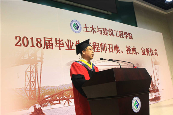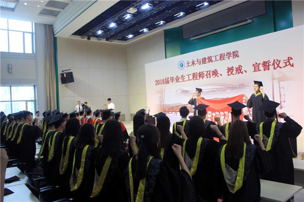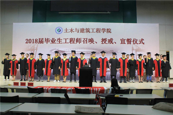 土木与建筑工程学院举行此次工程师召唤受戒仪式,旨在告诫、嘱托毕业生要在自己的岗位上肩负起工程师的社会责任; 要心系国家所需、社会所求、民众所望,去奋斗、去奉献、去担当。