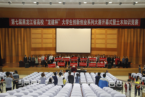 为深入贯彻落实党中央、国务院和省委省政府“大众创业万众创新”的部署和要求,深化我省高校创新创业教育改革,激发大学生创新创业热情,提升大学生创新创业能力,展示高校创新创业教育成果,2017年5月17日下午13点30分,第七届“龙建杯”全省大学生创新创业系列大赛开幕式在我校逸夫报告厅盛大开幕。我校党委副书记白玉、龙建路桥股份有限公司副总经理陈彦君、副总工程师马勇、黑龙江省公路学会副理事长肖生智、以及省内12所参赛高校相关学院的院长、系主任出席了本次开幕式。