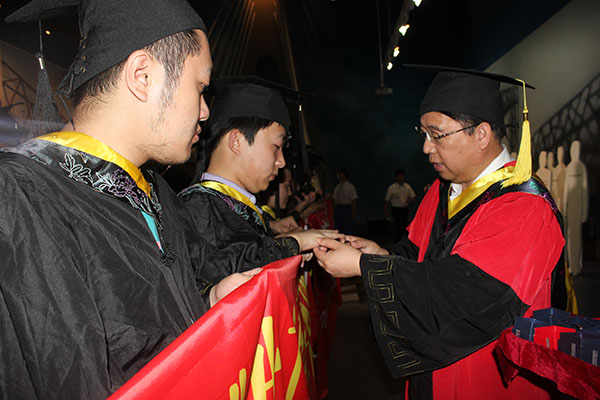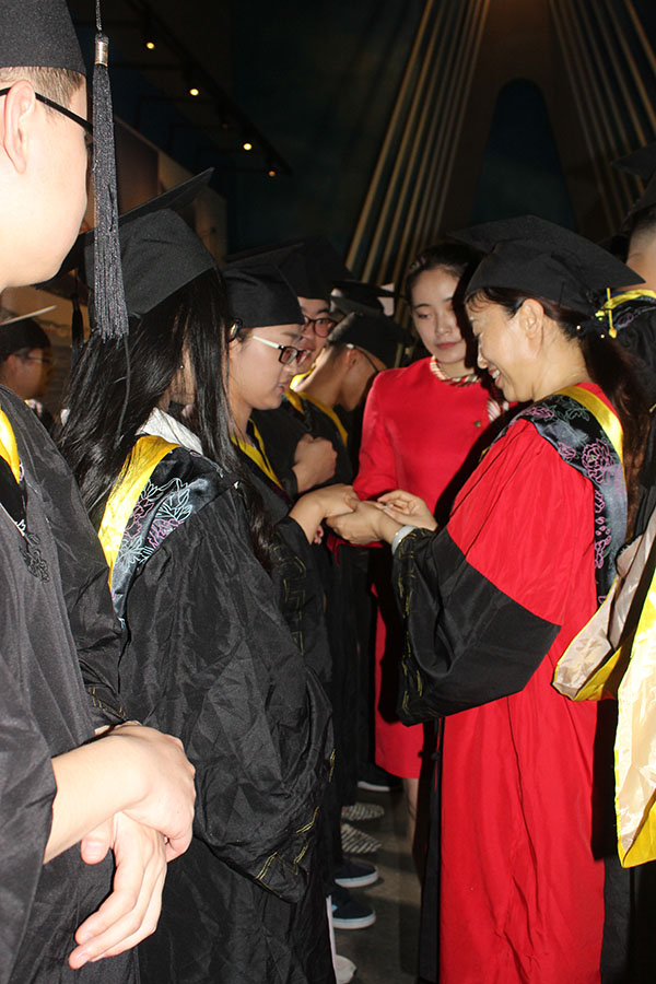 诵读誓词之后,武鹤院长代表学院为土木学子送上临别寄语。他说:作为土木人,我们心中始终秉承着“土蕴万物, 木参九天”的理想与追求;始终怀揣着“以人为本,工程至上”的情感与信念;始终弘扬着“顶天立地,敢为人先”的意志与精神。这就是土木的“根”与“魂”,也是一名土木工程师应有的品格与精神。他殷切地期望,土木学子一定要牢记今天的受戒之仪和铮铮誓言;要心系国家所需、社会所求、民众所望,去奋斗、去奉献、去担当!要把个人的梦想与祖国的富强、民族的振兴紧紧地联系在一起,只有这样才能有所作为,才能大有作为!