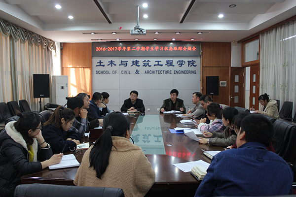 为不断提高教育教学质量和学生管理工作水平,进一步加强我院学风建设,推动学生勤奋向学,特别是对学生有困难的学生加强管理,重点帮扶,提升人才培养质量。2017年2月28日下午14点土木与建筑工程学院在土木楼418会议室召开了学生学习状态跟踪会熵会,会议由院党委书记郭树东主持,土木学院班子成员、全体辅导员参加了此次会熵会。会上,土木学院辅导员依次对挂科学生成绩情况进行详细的汇报,并对预警学生情况逐一进行介绍,从家庭、学校和学生自身特点等方面对学生进行了全面分析,重点交流了一些处于学业危机状态的学生情况,统计出我院共有预警学生82名,对此院长武鹤强调,辅导员要进一步加强对学生学习状态的跟踪,重点关注学业预警学生,从心理学视角对学业预警学生心理因素进行研究,进而实施有效干预,并通过建立学校、家庭、学生三位一体的预警平台,来提升工作实效,从而使预警学生总结经验教训,端正学习态度,建立学习信心,改进学习方法,顺利完成学业,不再出现降级情况。会上院党委副书记王宇鹏要求各系学生党支部书记,会后要整理汇总出各系预警学生信息状态名单。按学院班子成员分工协作的原则进行汇总。以便院领导开展帮扶工作。