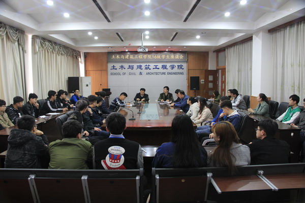 加强对教育教学质量的监控,进一步提高教育教学质量,提高办学水平,了解我院学生在学习、生活中遇到的实际困难以及诉求、建议、意见,倾听学生们的心声,更好地营造良好的育人学习环境,3月22日下午,土木学院在E418会议室组织召开了2016级学生座谈会。土木学院全体党政领导班子成员及2016级各班学生代表参加了会议。