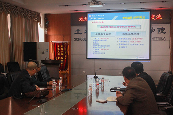 会后,武鹤院长等人陪同刘荣桂教授一行参观了我院的实验室、图书阅览室、毕业设计室以及教学文件资料室。对我院的教学资源建设给予了充分肯定,同时认为我院教学文件资料室的管理方式值得学习和推广,刘桂荣教授深有感触的说道:土木专业人才培养,可谓“南有汕大,北有黑工”。双方都表示将在今后的工作中加强合作,促进学习和交流,为土木工程专业的发展贡献力量。