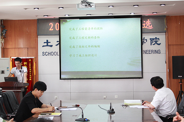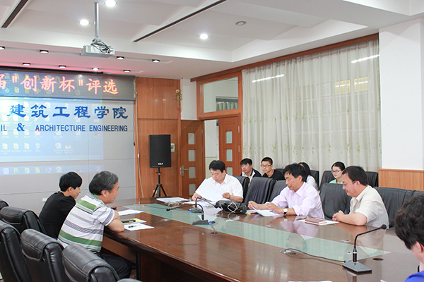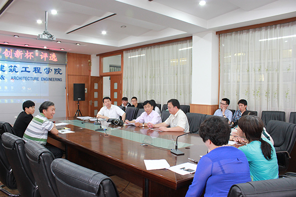 为推动应用型人才培养,提高学生实践与创新能力,进一步提升毕业设计质量。2016年6月24日,土木与建筑工程学院2016届“创新杯”优秀毕业设计公开答辩在土木楼四楼会议室举行。来自土木工程(建筑)、工程管理、土木工程(岩土)、建筑学、给水排水工程、建筑环境与能源应用工程等专业的学生和老师参加了此次公开答辩,答辩会由土木与建筑工程学院院长武鹤主持。